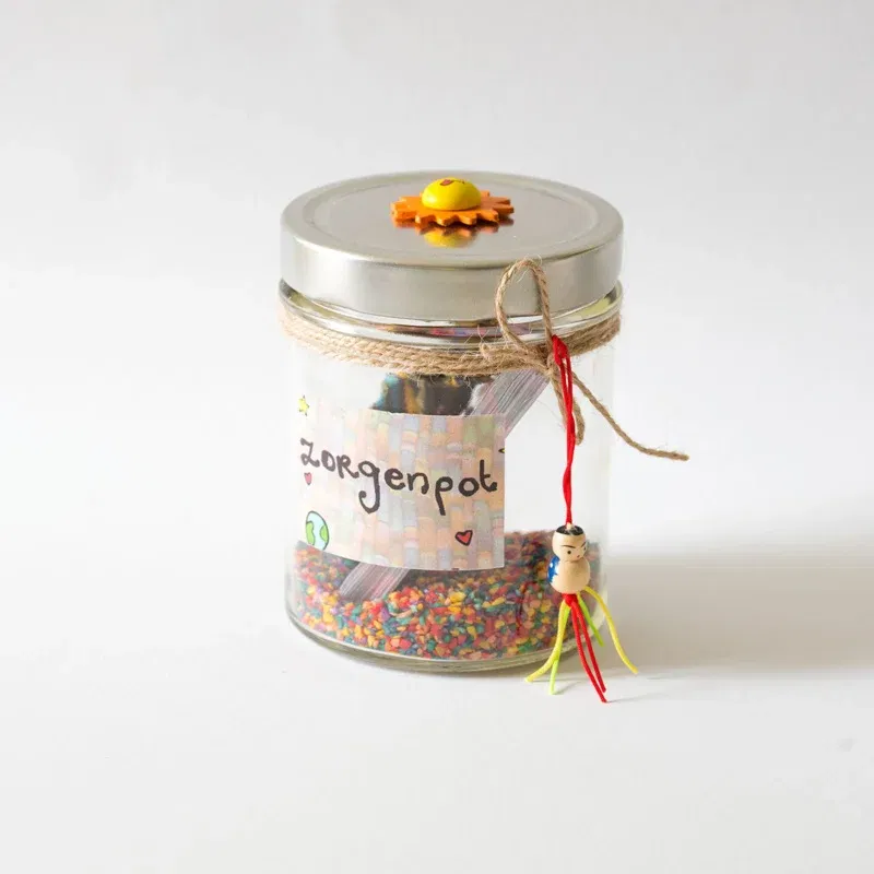 Je zorgen opschrijven en daarna in deze pot plaatsen samen met deze poppetjes werkt natuurlijk ook!